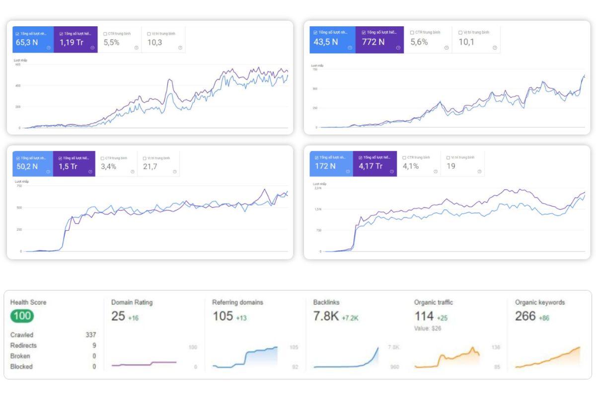Dịch vụ backlink chất lượng cao từ các trang báo uy tín có DR > 70, kết hợp chiến lược SEO tổng thể nhằm tránh spam và đảm bảo an toàn thuật toán Google.Đội ngũ chuyên gia SEO, kỹ thuật viên và biên tập viên giàu kinh nghiệm, DanaSEO triển khai quy trình bài bản từ tư vấn, chọn nguồn backlink, viết nội dung chuẩn báo chí đến theo dõi hiệu quả.Backlink báo chí đa dạng, giá cạnh tranh (chỉ từ 800.000 VNĐ), phù hợp nhiều doanh nghiệp. Cam kết uy tín – trách nhiệm – hiệu quả, đồng hành cùng khách hàng đưa website lên top Google bền vững.