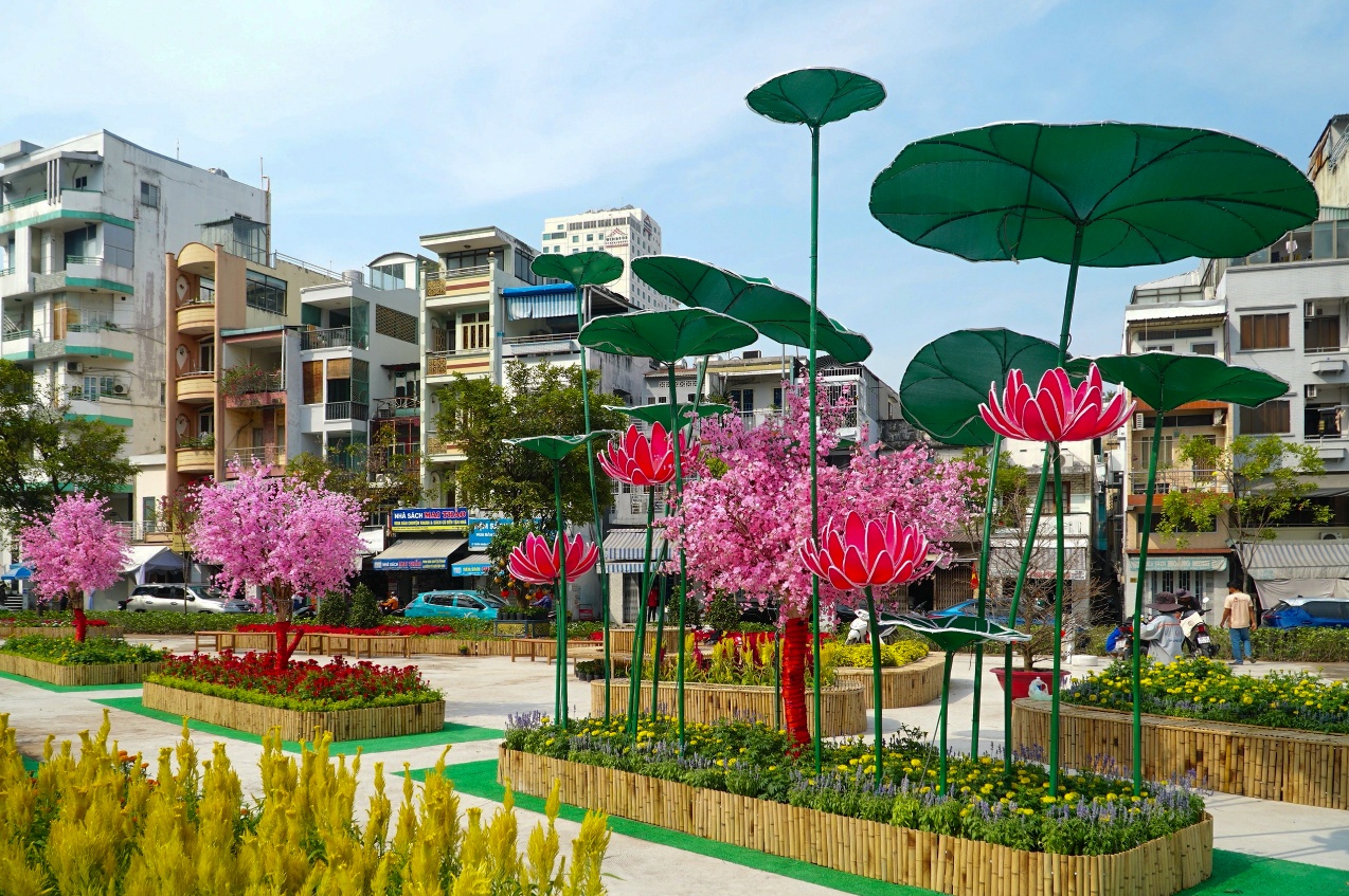 Bên cạnh biểu tượng trung tâm, công viên còn được bố trí nhiều tiểu cảnh hoa xuân, không gian check-in, khu vực nghỉ chân và các lối đi bộ liên hoàn, tạo nên một tổng thể hài hòa giữa cảnh quan, nghệ thuật và trải nghiệm cộng đồng.