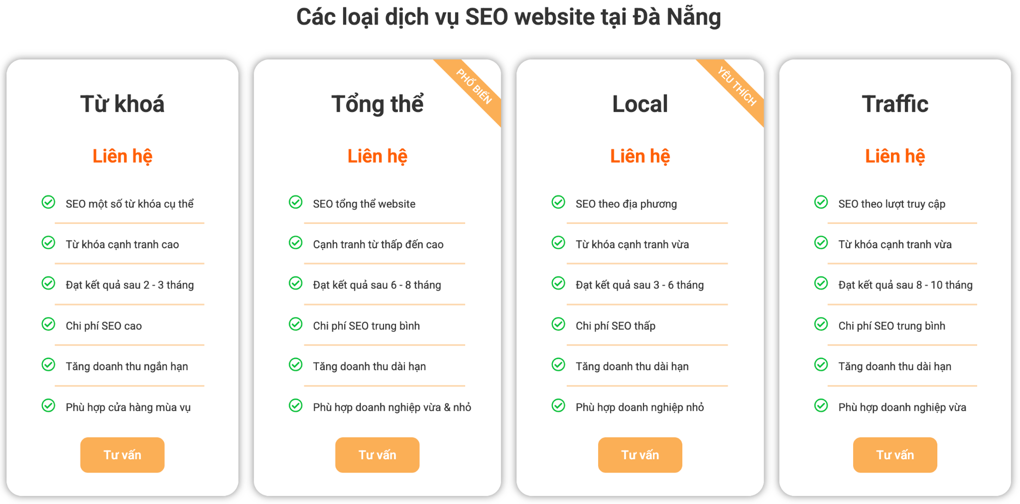 - SEO Local: Hướng đến khách hàng tại khu vực địa phương như Đà Nẵng