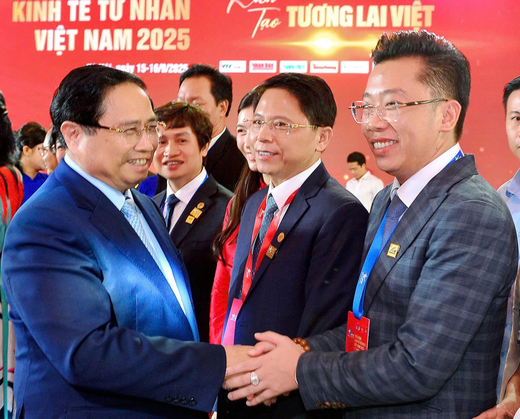 Ông Lê Đức Hưng cùng Thủ tướng Phạm Minh Chính tại Diễn đàn Kinh tế tư nhân Việt Nam 2025