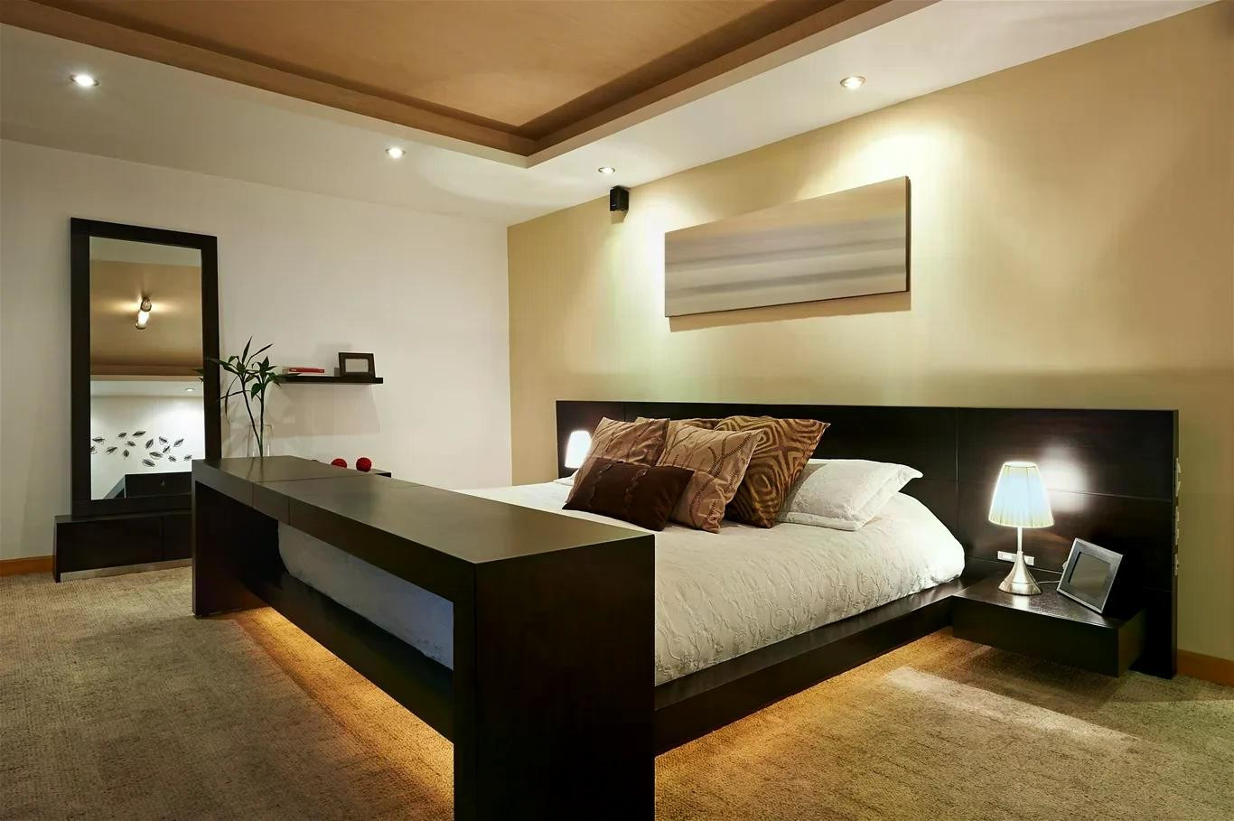 Trong nhiều thiết kế mới, đèn trần không còn là nguồn sáng trực diện. Thay vào đó, ánh sáng được hắt lên trần hoặc tường, lan tỏa nhẹ nhàng khắp không gian như một lớp sương mỏng. Hiệu ứng này khiến phòng ngủ trở nên mềm mại, giảm bóng gắt và xóa đi cảm giác khô cứng thường thấy ở những không gian chiếu sáng thô.