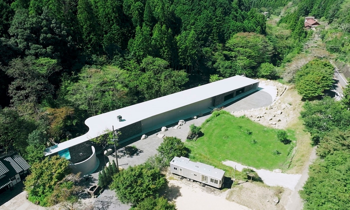 Biệt thự tại thành phố Toyota, Nhật Bản có diện tích xây dựng 435 m2, với chiều dài xấp xỉ 100 m, nằm cạnh một dòng suối và tiếp giáp một căn nhà gỗ truyền thống. Công trình lựa chọn kết cấu bê tông, áp dụng triệt để đặc tính cách nhiệt và lưu giữ nhiệt của vật liệu để duy trì nhiệt độ ổn định quanh năm mà không cần sử dụng điều hòa.