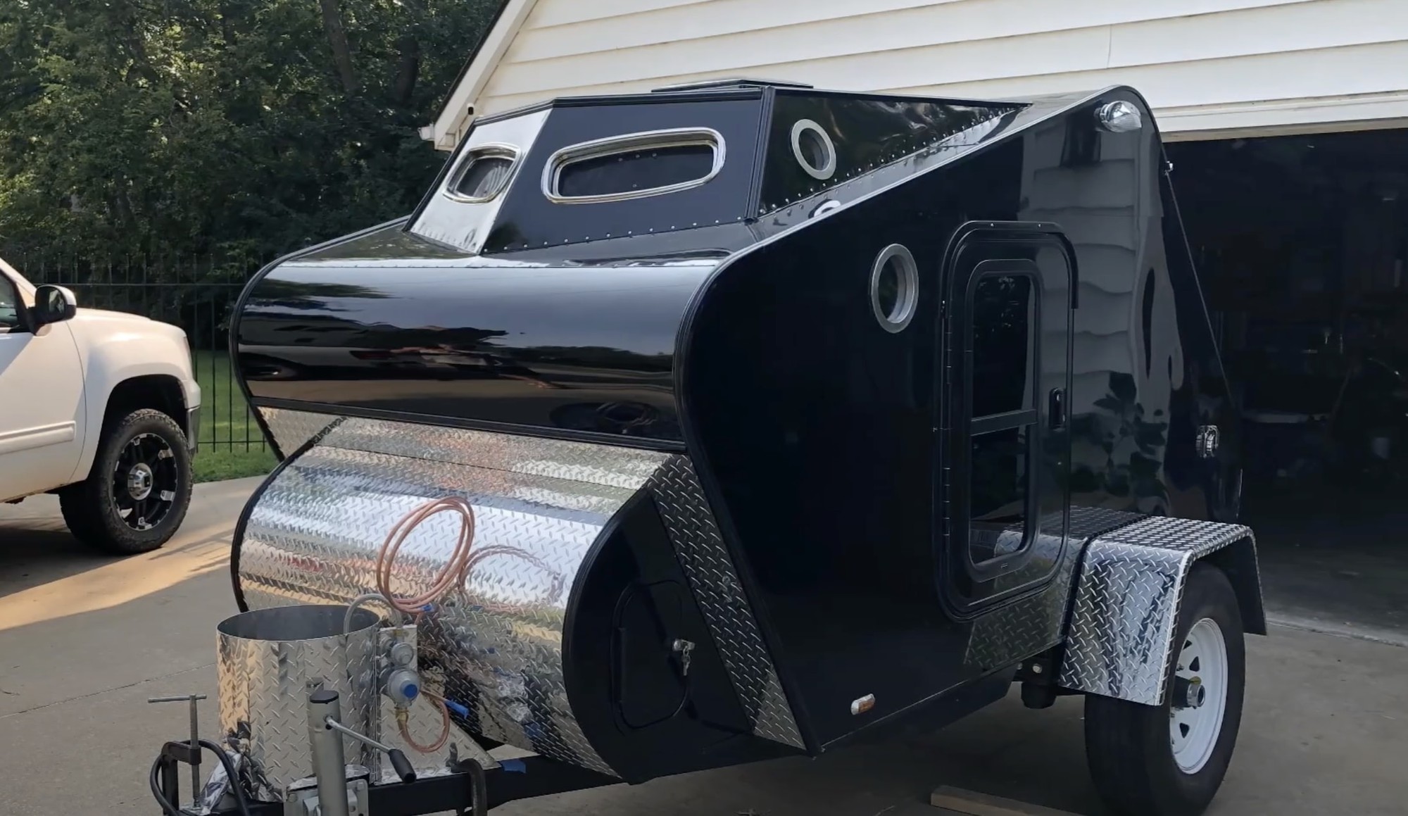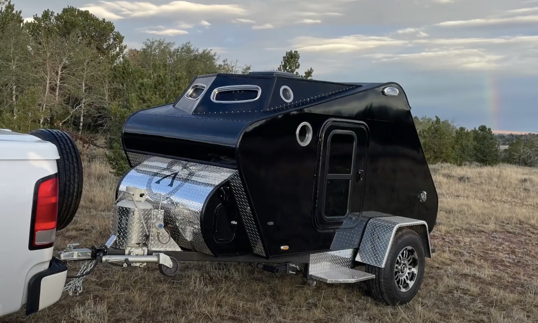 Nhà di động - xe cắm trại hình giọt nước tự chế độc đáo trông rất giống một chiếc xe tăng sẵn sàng chiến đấu, chỉ thiếu tháp pháo và bánh xích.