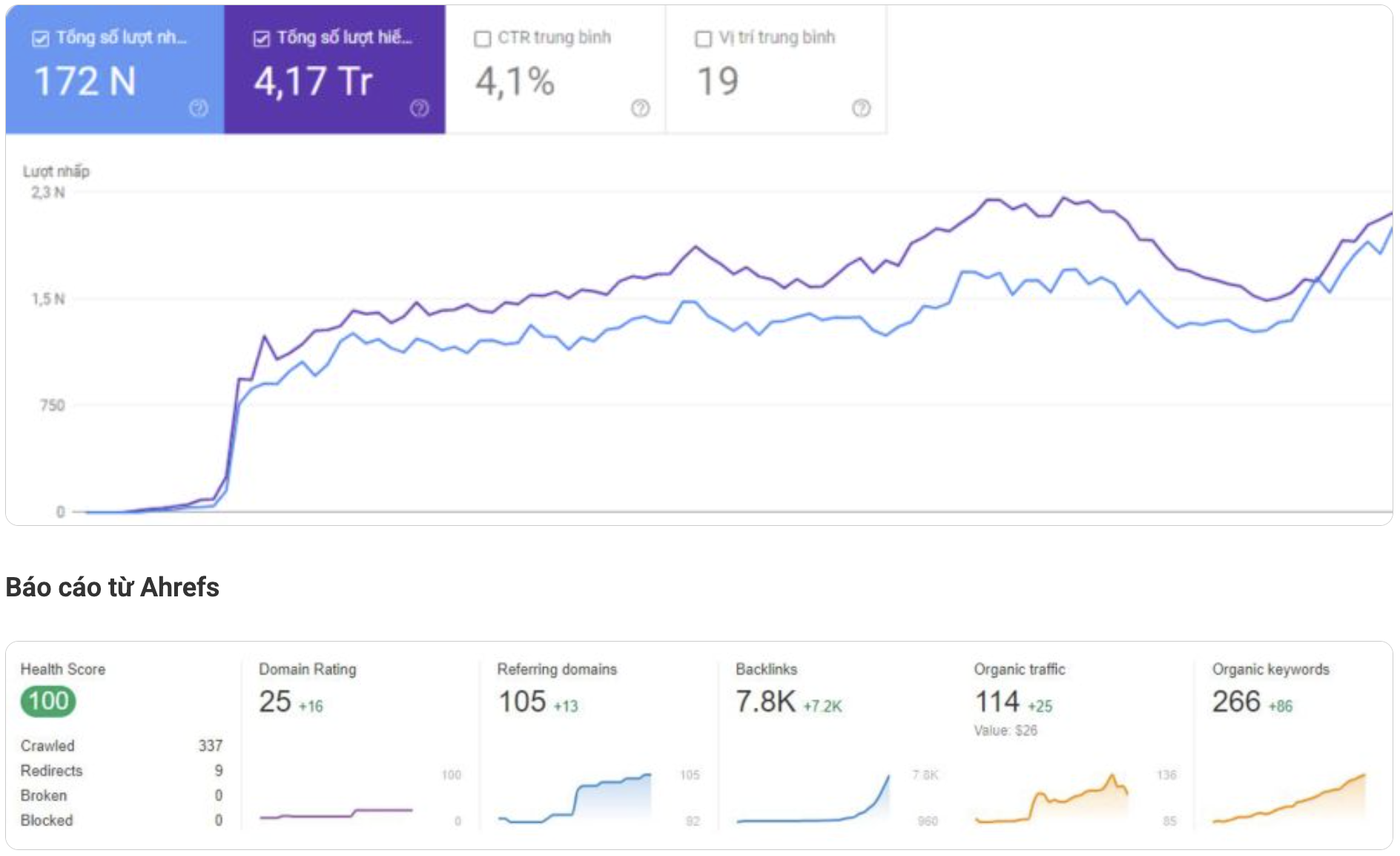 - Bước 5: Báo cáo chi tiết các hạng mục đã triển khai như file audit website, số lượng bài viết, thứ hạng từ khóa,… giúp khách hàng theo dõi hiệu quả rõ ràng.