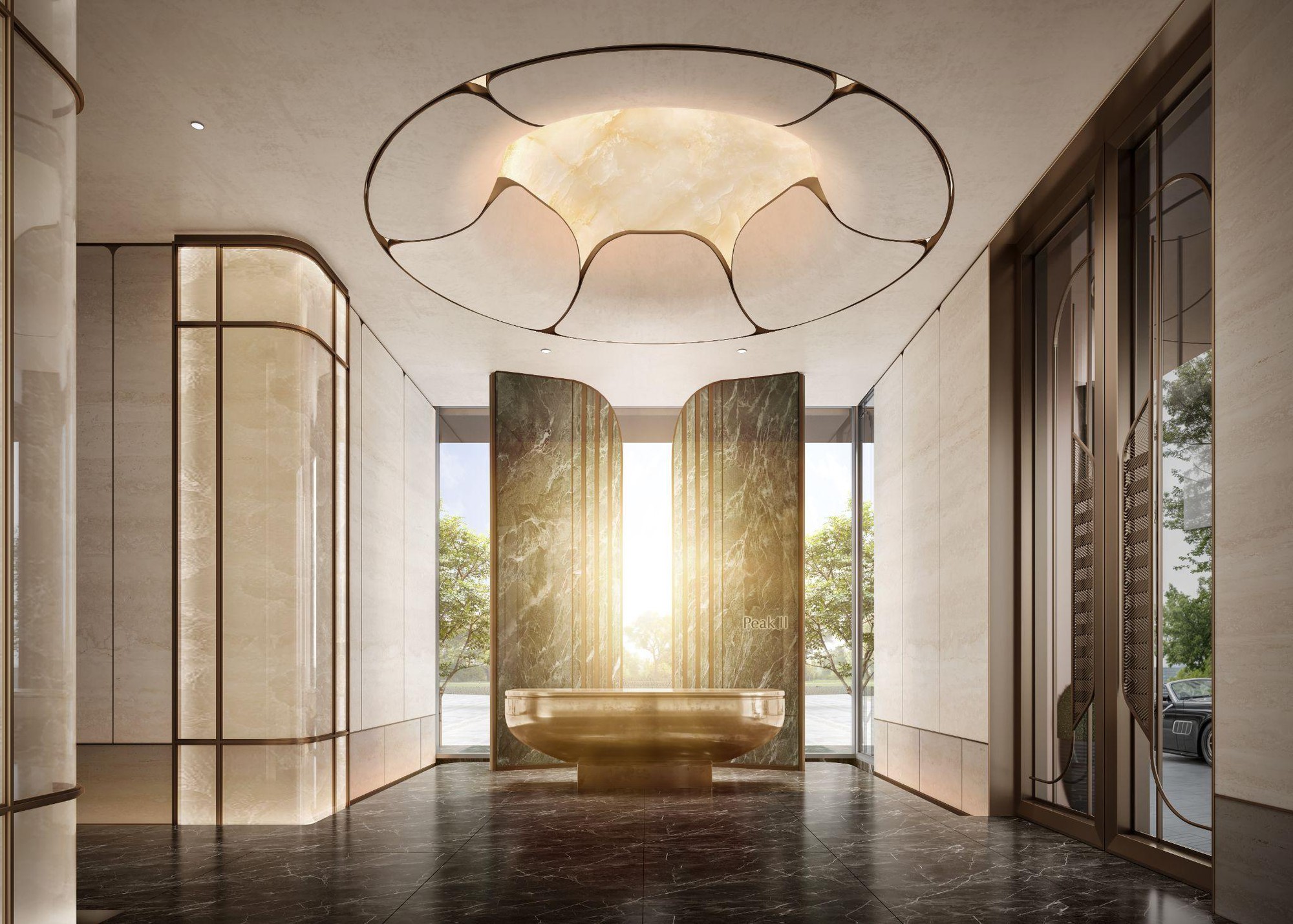 Sảnh đón tiếp sang trọng với những đường nét lấy cảm hứng từ cánh hoa sen